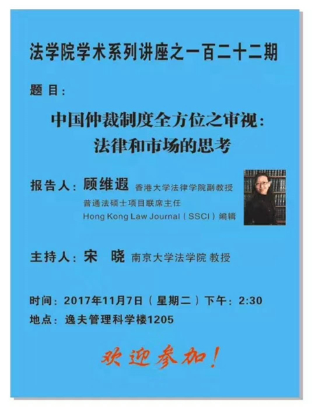 2017年11月,受新澳彩开奖 邀请,香港大学法律新澳彩开奖 顾维遐副教授到新澳彩开奖 讲学。顾维遐副教授同时也是香港大学普通法硕士项目的联席主任。 11月7日下午,顾维遐副教授在逸夫管理科学楼1205报告厅为新澳彩开奖 的老师和同学...