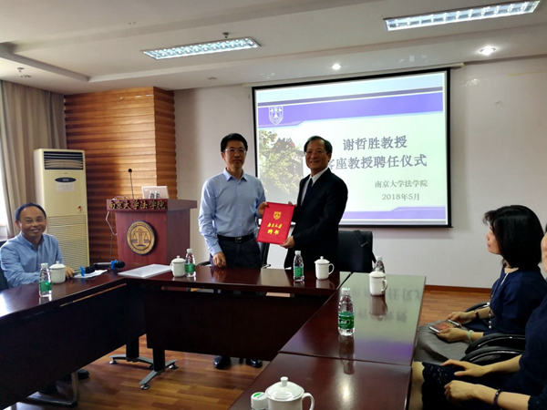 2018年5月23日下午,新澳彩开奖 在鼓楼校区逸夫管理科学楼1205室举办了谢哲胜教授“客座教授聘任仪式”。院长叶金强教授、院党委书记王丽娟教授、新澳彩开奖 金俭教授以及四十余位师生出席聘任仪式。聘任仪式由新澳彩开奖 副...