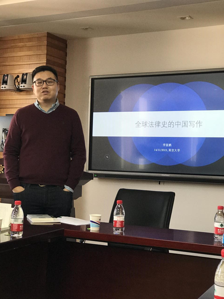 2019年11月15日下午14:00点,德国马普所欧洲法律史研究中心研究员、法学博士李富鹏主讲的主题为“全球法律史的中国写作”的讲座在逸夫管理科学楼1205室成功举办。本次讲座由南京大学法学教授、博士生导师张仁善教授主...