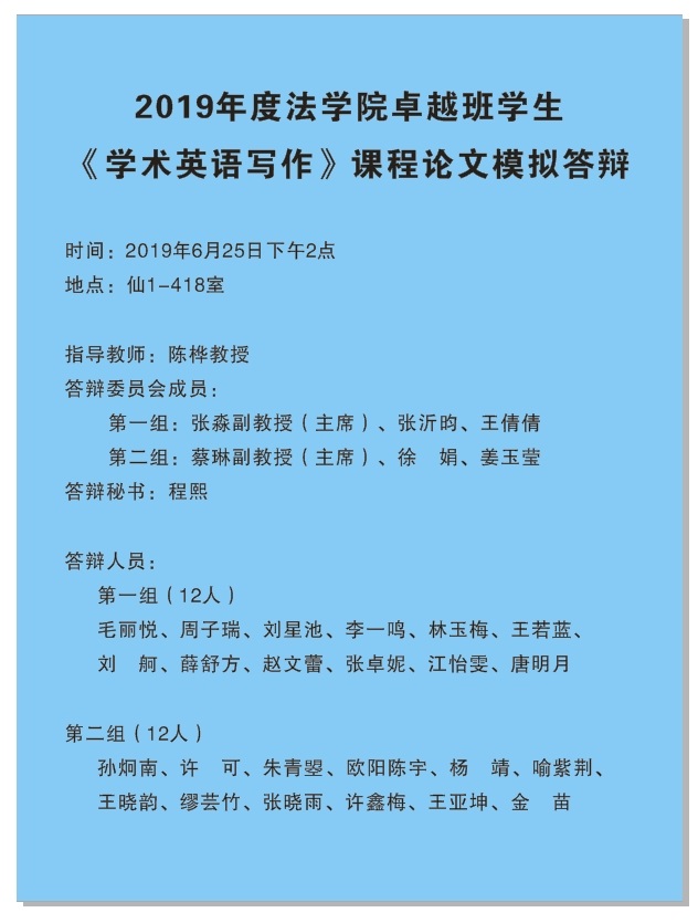 2019年度新澳彩开奖 卓越班学生《学术英语写作》课程论文模拟答辩