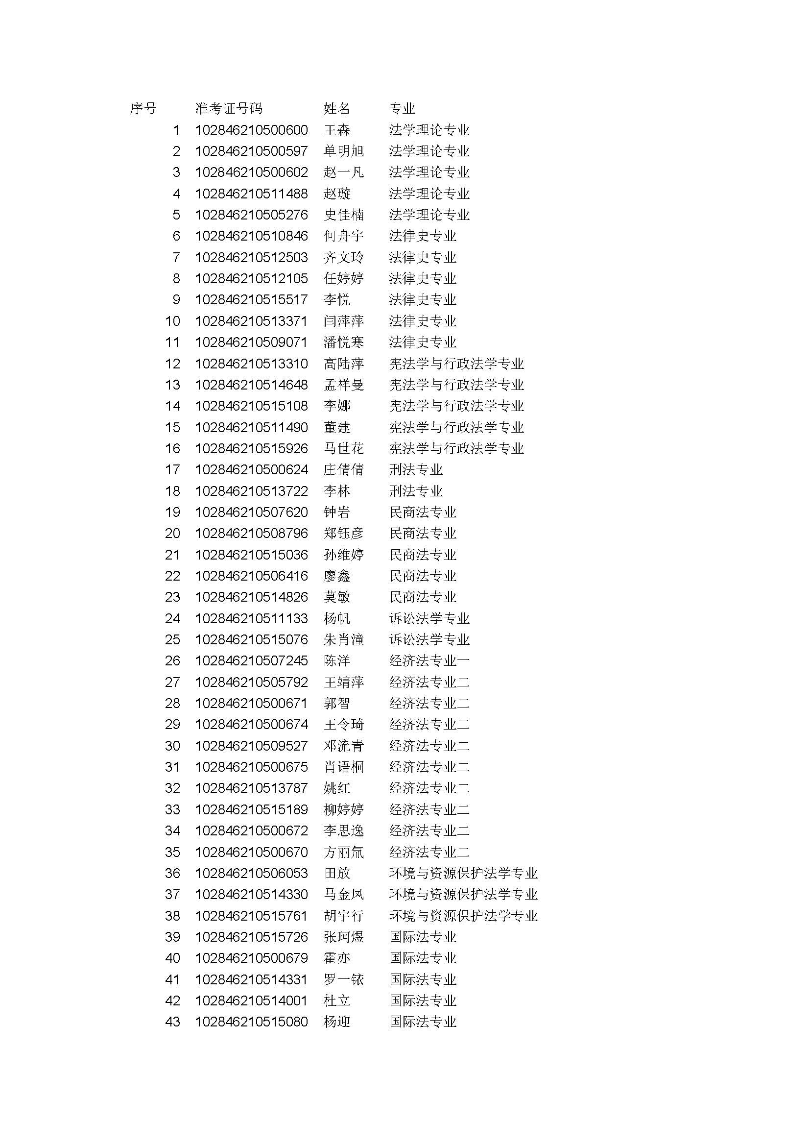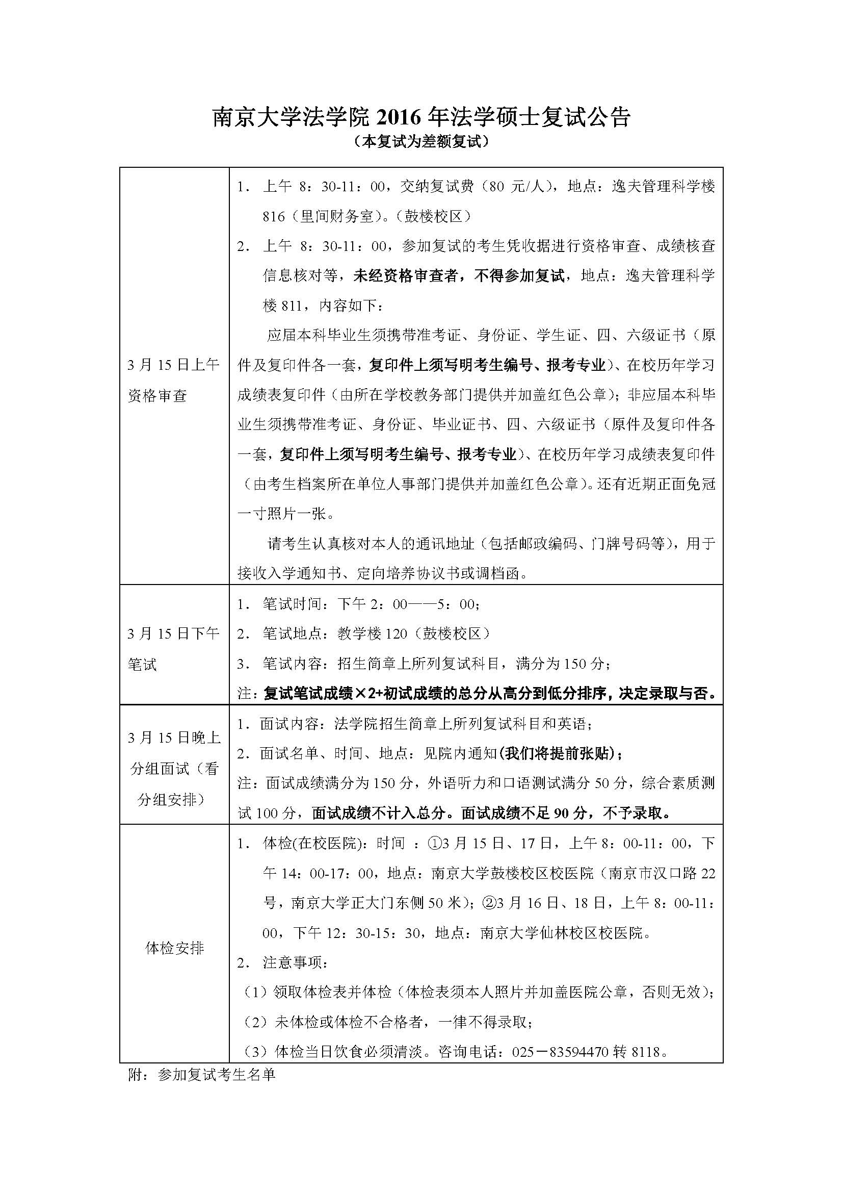 新澳彩开奖 2016年法学硕士复试公告及参加复试考生名单