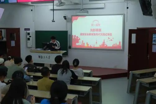 活动伊始,主持人余帆以“国家安全是民族复兴的根基”开篇,带领全体同学观看国家安全教育宣传片,走进隐秘而伟大的国家安全战线。短片不仅聚焦于无名英雄的默默奉献,更将视角拉近至大学生活场景,揭示了看似平常的邮件往来、社交媒体分享、数据传递中可能潜藏的安全风险。