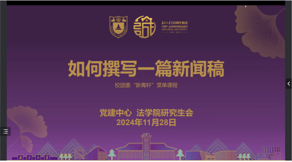 23级硕士研究生张程晨担任主讲人,分享新闻稿撰写知识。课程结束后,针对同学们日常宣传工作的问题,张程晨强调要把握异同点,助力同学们在宣传工作中提升新闻稿写作能力。