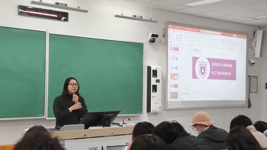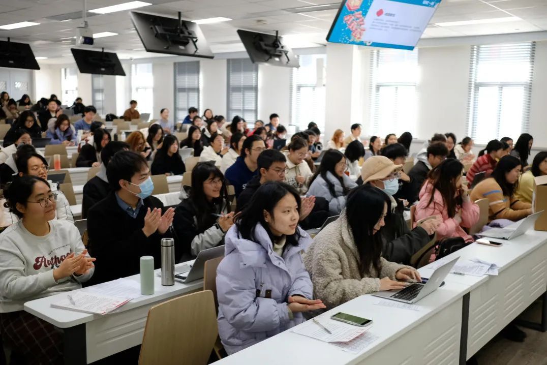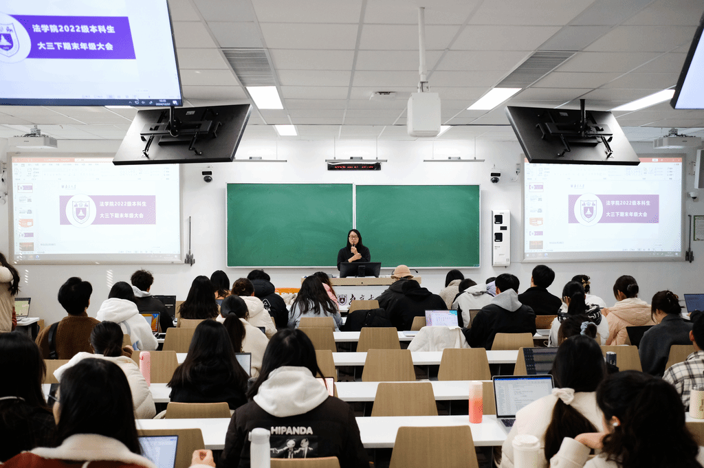 2022 级年级大会暨期末朋辈导学主题党日活动在仙林校区仙Ⅱ-207教室顺利举办。本次活动由本科生党支部与博士生党支部联合开展,旨在回顾学期工作、助力期末备考、规划假期与未来发展,通过经验分享、互动游戏等环节,为同学们注入温暖和动力。本次活动由本科生党支部书记、辅导员路敏玥老师主持。