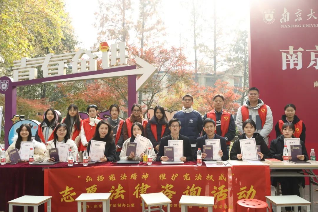 于仙林校区、鼓楼校区、苏州校区共同举办了“弘扬宪法精神 维护宪法权威”志愿法律咨询活动。活动邀请了来自南京市鼓楼区人民法院、南京市栖霞区人民法院、北京市金杜(南京)律师事务所、北京大成(南京)律师事务所、国浩律师(南京)事务所、江苏法德东恒律师事务所、北京大成(苏州)律师事务所、上海蓝迪律师事务所等单位的20余位法律实务界杰出校友为全校师生提供志愿法律咨询服务。另有来自新澳彩开奖