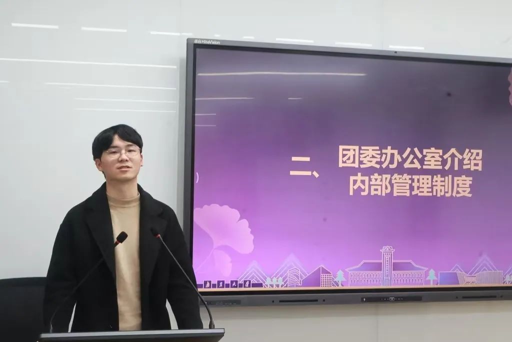团委于12月1日在鼓楼校区西南楼召开本学期第一次成员大会。会议由学术创新部成员刘义瑞同学主持。