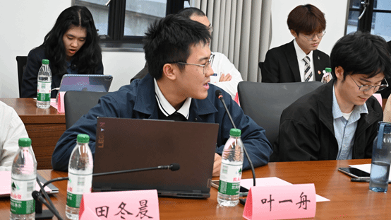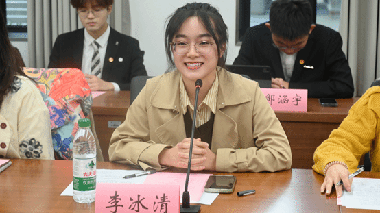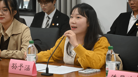 双方围绕第二课堂建设、学生职业生涯发展、涉外法治人才培养、实践能力培育四个主题进行了学生代表发言和交流提问。