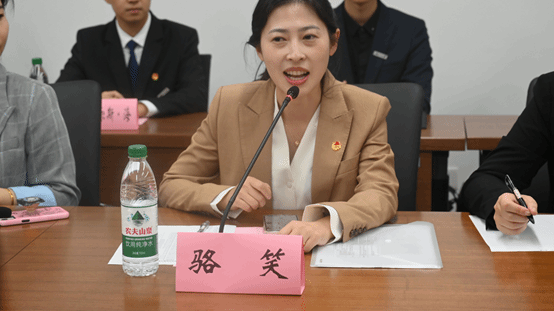 曹玉笛在汇报中阐述了南京大学法律援助中心的“五位一体”综合培育模式,并重点介绍了法律援助办公室的线下值班和12348中国法网的线上值班项目。同时也强调了中心在普法宣传、学术交流、实习实训以及法律竞赛等多个领域所发挥的积极作用。
