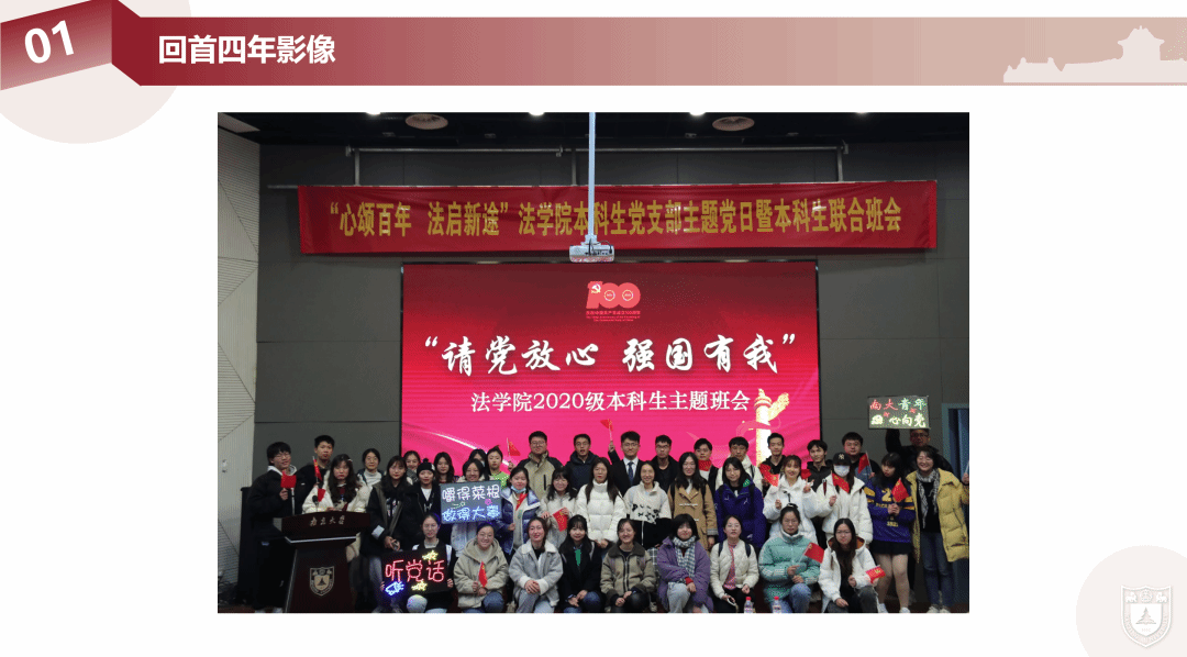 党委副书记马骏老师、辅导员路敏玥老师出席本次活动。本次活动由2020级本科生熊昕旖主持。活动带领大家重温在南大的四年美好时光,同时展望未来,为同学们的本科生活划上圆满句号。