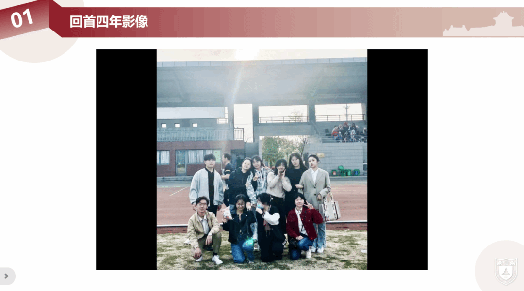活动伊始,本科四年级团总支书记殷逸洲同学播放了由班委制作的2020级班集体纪念影像视频,带领大家回顾了四年本科生活的点点滴滴,将本次班会引入了毕业季的氛围中。