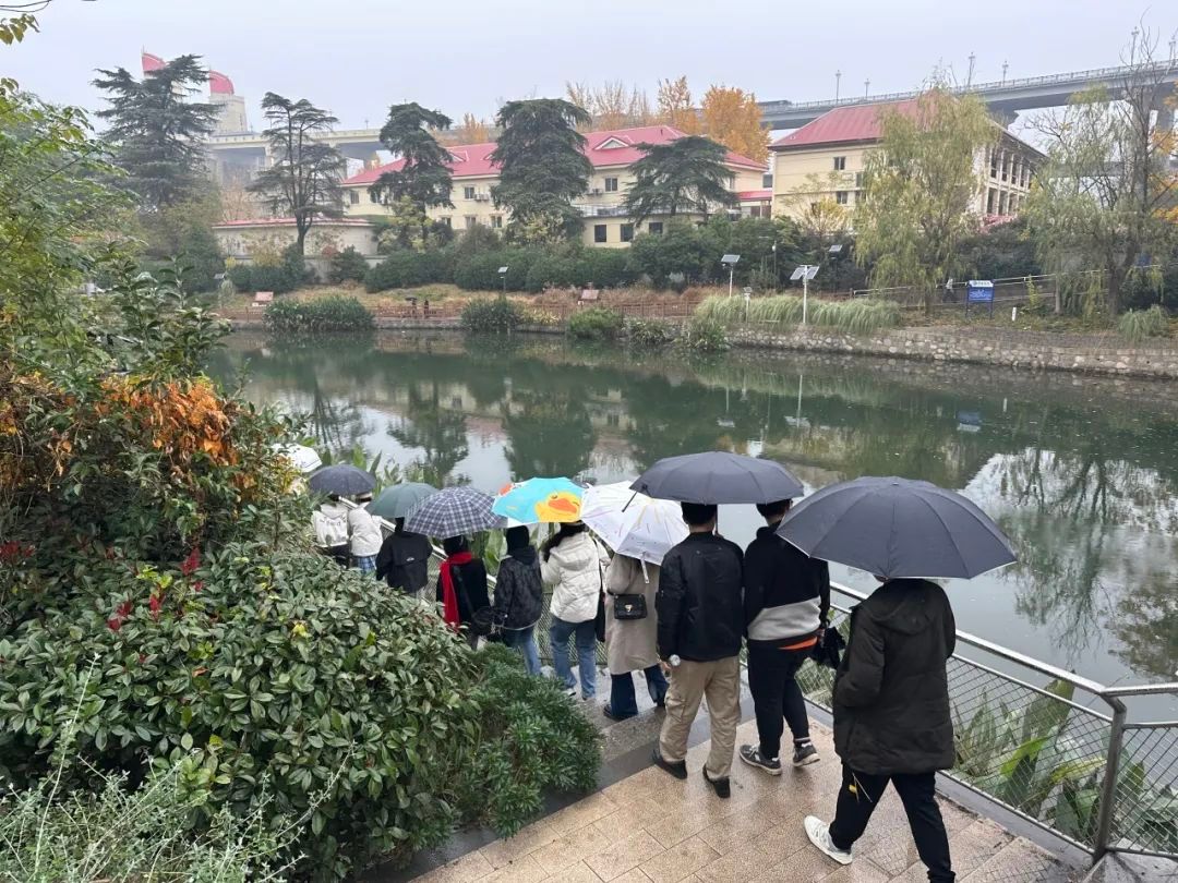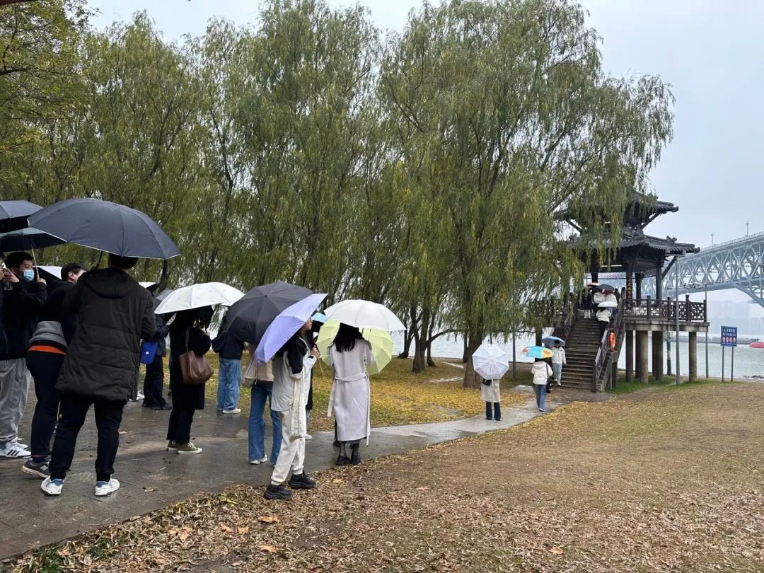 大家在雨中前行,沿途重温红色足迹,聆听红色故事,交流彼此感想,在中国共产党领导下,中国工人阶级坚持“自力更生,艰苦奋斗”的方针,克服种种困难,顺利完成施工任务,开创了中国人民依靠自己的力量建设大型桥梁的新纪元。雨中的砥砺前行,更激励着大家“衣食无忧而不忘艰苦,岁月静好仍接续奋斗”。参观后,党员先锋站主任团黄一哲同志感慨道:“南京长江大桥建设者迎难而上、逢山开路、遇水架桥的精神深深感染着我,激励我在研究生阶段树立远大理想,发扬艰苦奋斗精神,最终实现个人价值。”