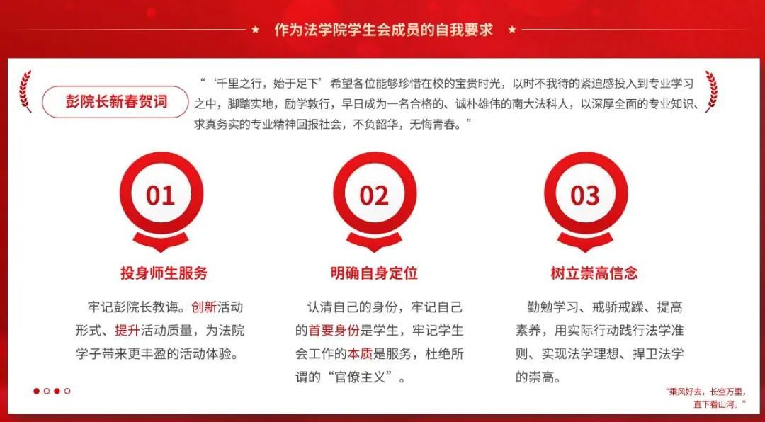 第三,会议集中学习了《关于学联学生会工作人员改进作风服务同学的若干规定》。为深入推进学联学生会组织改革,全面加强对学联学生会工作人员的管理,全国学联在2018年《学生会、研究生会干部自律公约》的基础上制定了《关于学联学生会工作人员改进作风服务同学的若干规定》,并经全国学联二十七届委员会第一次全体会议审议通过。《规定》指出: 学联学生会工作人员要胸怀崇高理想,恪守学生本分,牢记服务宗旨,以更高的标准要求自己,守纪律、讲原则、作表率,塑造清新阳光的组织形象。
