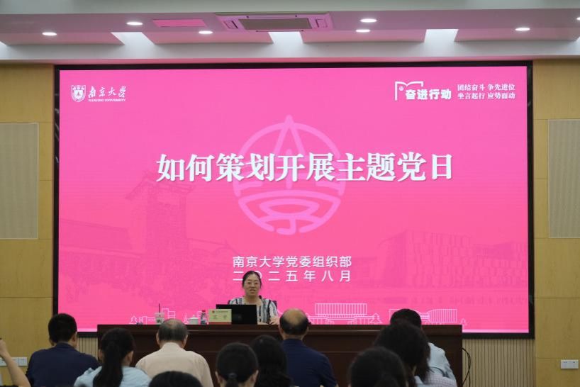 主题党日是增强党员意识、锤炼党性修养的重要载体,应当突出“党味”,创新形式,务求实效。8月18日下午,南京大学党委组织部副部长范赟就如何策划开展主题党日进行专题讲座。范赟结合丰富的实践案例,围绕“如何避免主题党日娱乐化、表面化”“如何将党建与法学专业学习相结合”等问题展开系统讲解,分享多种务实有效的主题党日创新形式与组织方法。参训的党支部书记和支委代表纷纷表示深受启发,对于如何更高效、更优质地开展主题党日活动有了深入思考,自身的理论认识和实践能力也得到进一步提升。