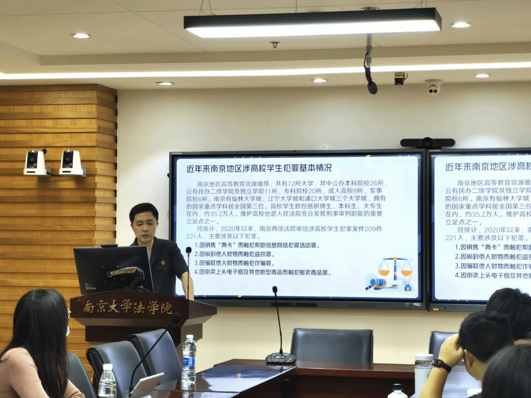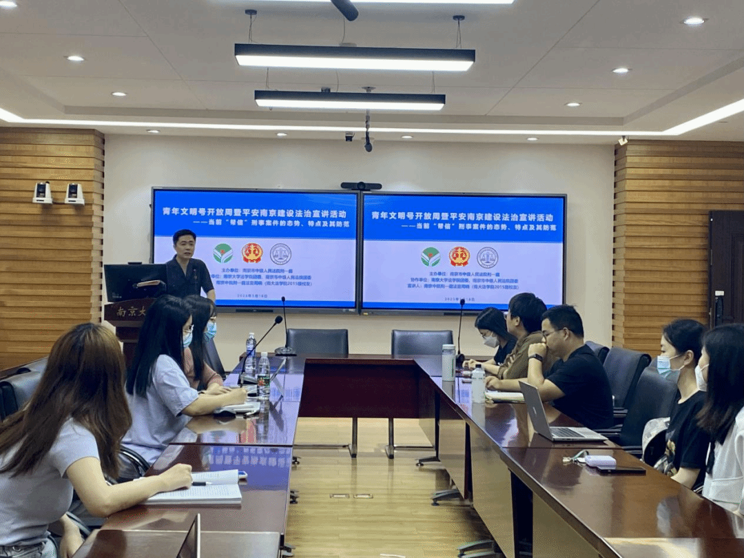 2023年5月18日晚,“能动司法助力平安南京建设——刑事法官推进平安法治宣传进校园”活动在鼓楼校区逸夫管理科学楼1205会议室成功举办。本次活动由南京市中级人民法院刑一庭、南京市中级人民法院团委、新澳彩开奖