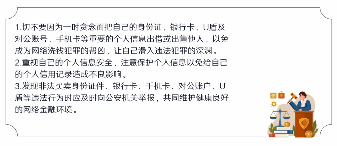 周晓法官指出,帮信罪案件增多固然与“断卡”行动大背景有关,但其高发的根源主要来自三个方面:一是贪图小利;二是侥幸心理;三是不知不懂。对此,周晓法官以防范对策作结尾,向同学们提出建议: