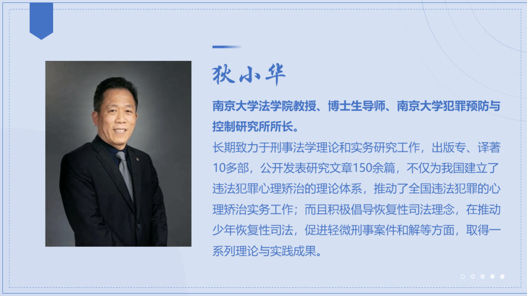 你们可以从两个方面理解。第一,从我的工作历程来看。前二十年我确实在监狱研究怎么让犯人变好,后二十年我和同学们在一起,结合课程内容想要向同学们传递我个人“成人”“成才”的相关理念。第二,我的科研和社会工作中大部分的内容都与这句话有关。从恢复性司法开始,到少年司法、未成年人基地的建设和职务犯罪的预防,以及我现在的教育事业,始终和这句话密切相关。