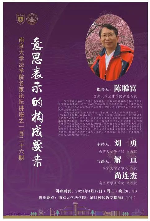 讲座预告|陈聪富教授:《意思表示的构成要素》