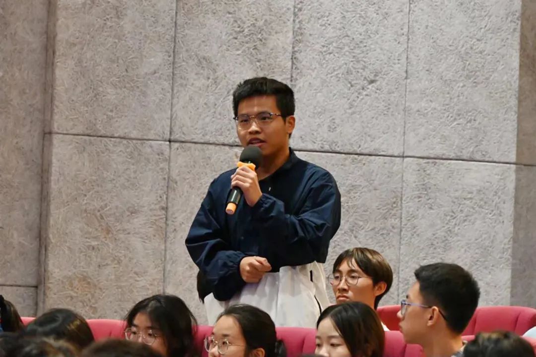 在现场互动环节,同学们纷纷把握住这难得的机会,积极提问,与学者们展开了热烈而深入的交流。同学们的问题涉及广泛,既有对科技创新前沿趋势的深刻洞察,也有对未来人才培养模式的深切关怀,每一个问题都凝聚着学子们对知识的渴望和对未来的憧憬。