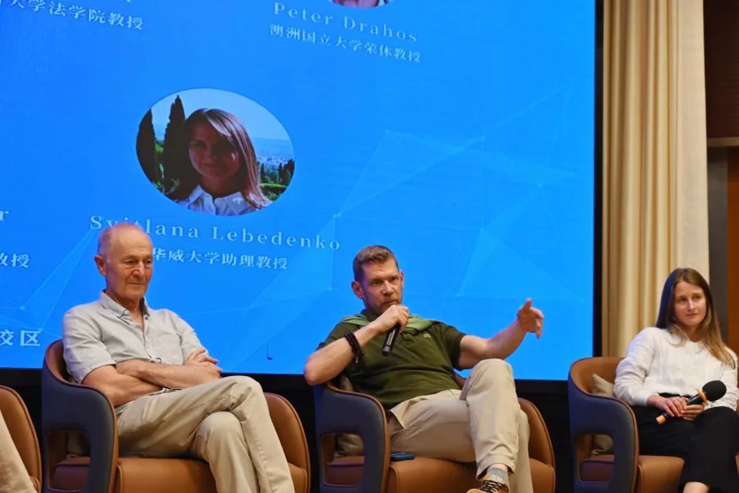 图为澳洲国立大学荣休教授Peter Drahos解答同学们的问题
