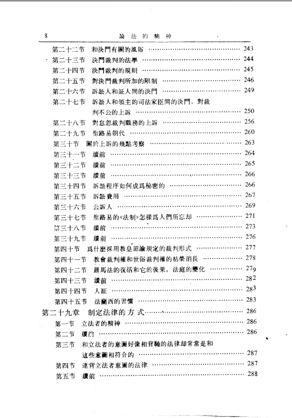 一般地说,法律,在它支配着地球上所有人民的场合,就是人类的理性;每个国家的政治法规和民事法规应该只是把这种人类理性适用于个别的情况。为某一国人民而制定的法律,应该是非常适合于该国的人民的;所以如果一个国家的法律竟能适合于另外一个国家的话,那只是非常凑巧的事。
