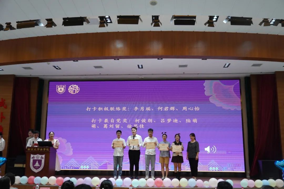 当代青年处于中华民族伟大复兴的时代潮流中,应该树立家国情怀,投入于火热的青春实践中。然而,平凡如我们,拥有生逢盛世之幸,虽未能像革命先辈们书写血泪之歌、成就英雄名讳,但仍可以在细水长流的生活中,成就别样的自己。在“像我这样的人”的非正式颁奖仪式上,各位同学都收获了一番非正式的荣誉称号。如黎可嘉、郭胜豪同学获得“紫金山山大王奖”,金晓洁、唐梦璇、陆慧文、丁曾雪、姜慕涵、程冰清获得“最美朋友圈奖”,李月瑶、何君辉、周心怡获得“打卡积极联络奖”,狄子淳获得“桌游小天才奖”……学工办辅导员唐赟老师、平凡老师和王翠兰老师分别为获奖同学颁发了证书。