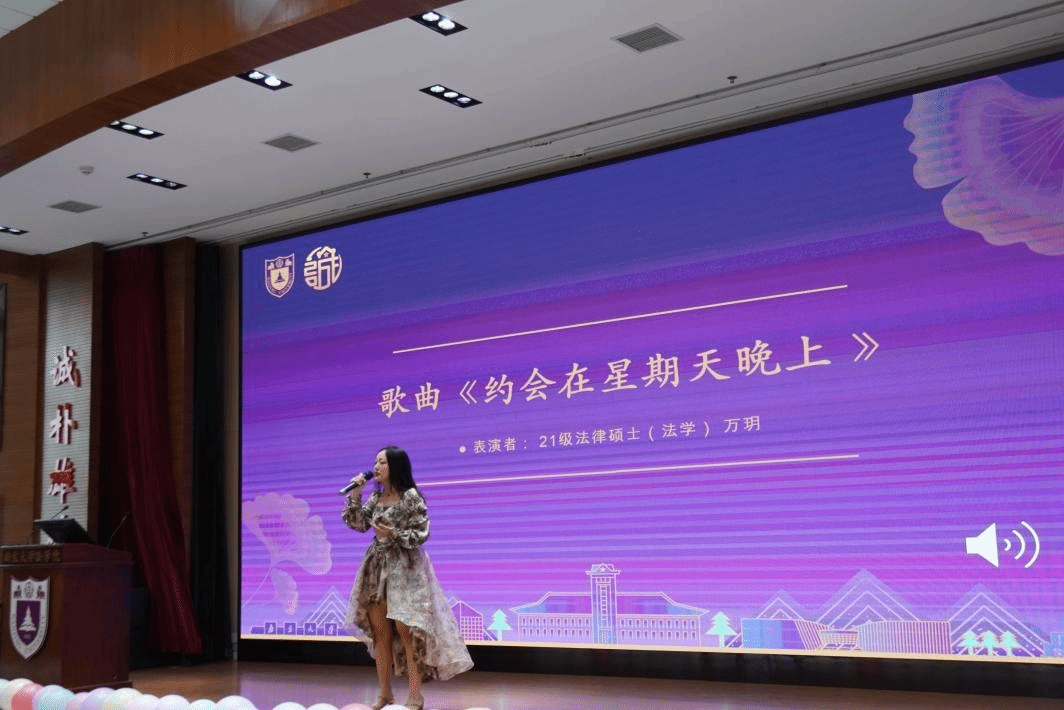 接着,21法律(法学)硕士万玥同学为大家带来歌曲《约会在星期天晚上》,让同学们穿越回那一幕幕相聚相拥、互诉衷肠的难忘夜晚。