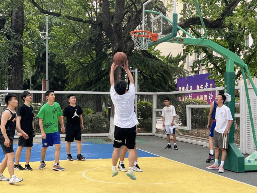 “致敬青春,逐梦远航”毕业季篮球赛在鼓楼校区南园篮球场拉开帷幕。本次比赛共有两个项目,分别为3v3比赛以及三分球比赛。正值骄阳似火的六月,为了欢送毕业生同学,参赛选手们在赛场上奔跑跳跃,以运动逐光影,承初心励前行,他们个个雄姿英发,不仅展现出了顽强的拼搏与竞技精神,更饱含着对毕业生同学美好的祝愿。