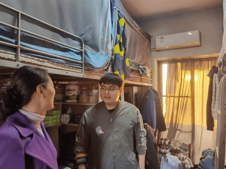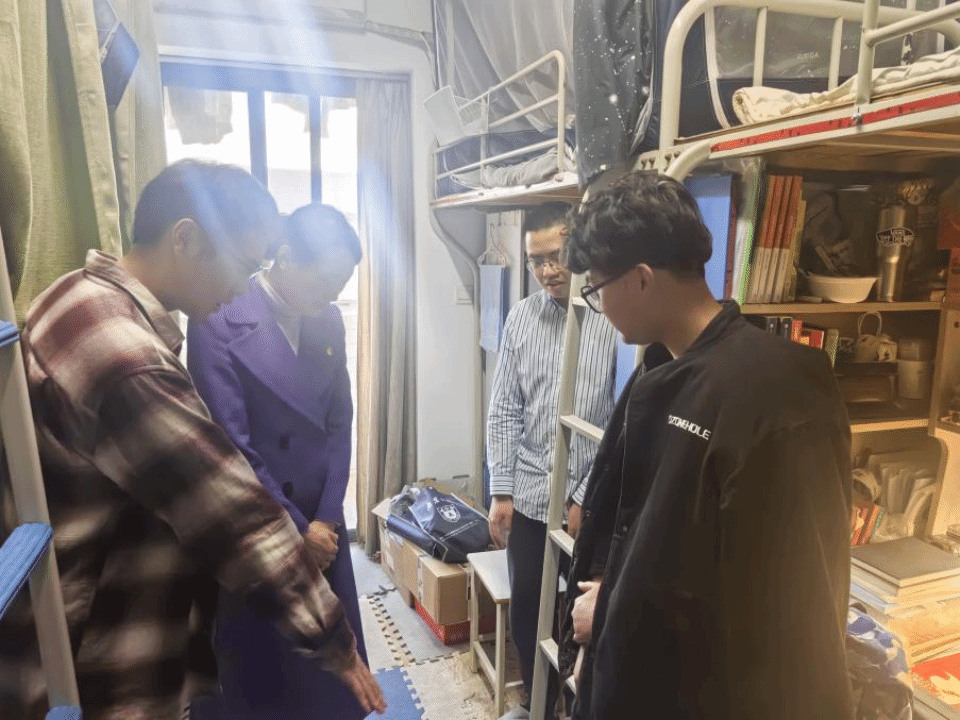 王书记对同学们的寝室布置连连称赞:“大家的寝室真是宽敞明亮、整齐有序啊!”书架上整齐堆放的书籍、桌旁放置的蛋白粉、地面上铺贴的地板革……领导和老师们关注着寝室中的每一处细节,时刻关心着同学们的学习生活,叮嘱同学们注意劳逸结合,保持身心健康。马书记和路老师提出举办新澳彩开奖