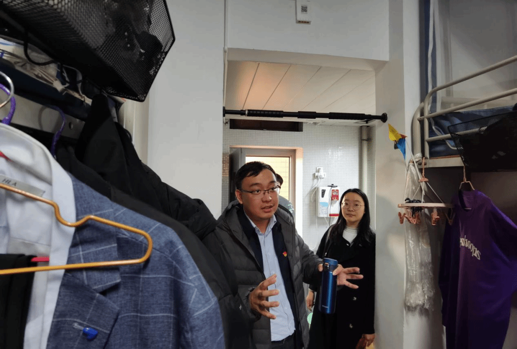 党委书记王丽娟老师带队于11月21日下午走进仙林校区本科生宿舍,切实推进“三室一厅”工作。院党委副书记马骏老师、团委书记路敏玥老师参加活动。