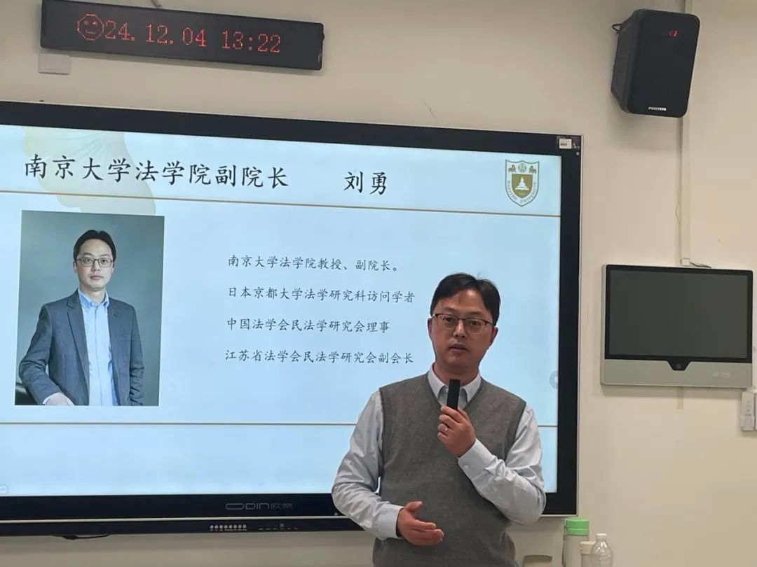 副院长刘勇老师在活动尾声对三位嘉宾的精彩的分享深表认同,并结合自身丰富阅历进行了极具价值的补充拓展。刘勇院长着重指出,我们务必精心培育法律思维,通过海量阅读文献,不断拓展知识边界,提升能力上限。其次,要着力锤炼写作能力,在广泛阅读积累的坚实基础上坚持多写多练、笔耕不辍。同时,善于巧妙利用碎片化时间,多与老师深入交流互动,做好知识整理归纳。刘勇院长鼓励大家拓宽视野,放眼世界,博采众长、兼容并蓄。最后,刘勇院长对本次活动给予了充分肯定与高度评价,鼓励多开展此类活动,为大家的职业选择提供更全面、更深入、更精准的助力与引导。