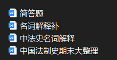 第一遍通读自己的笔记,对知识有初步的了解,把握整体框架;对笔记进行“脱水处理”,方便后续自己的背诵!以我当时备考中国法制史为例子,将13w字的笔记整理为几个不同的文档。
