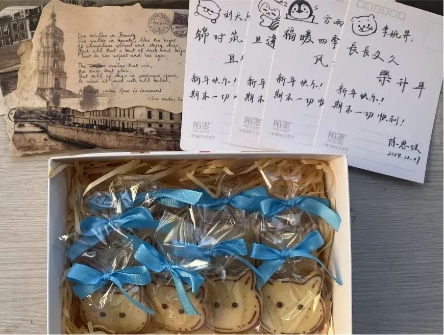 朋辈导师活动中结识了人美心善的思仪学姐!思仪学姐就如知心大姐姐般给予了我们莫大的关怀与帮助。当我们面对纷繁复杂的专业课知识而感到无所适从时,学姐毫无保留地分享自己的课程笔记与学习经验,驱散了大家期末月的迷茫与焦虑;跨年时,学姐准备了精心制作的美味小饼干与个人专属祝福贺卡,给我们带来了惊喜与感动;寒假里,学姐还抽出宝贵时间,为我们答疑解惑,无论是升学的抉择,还是生活的困扰,都给出了宝贵建议……于我而言,朋辈导师活动不仅展现了新澳彩开奖