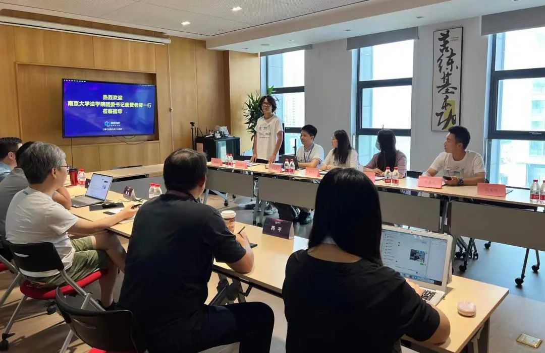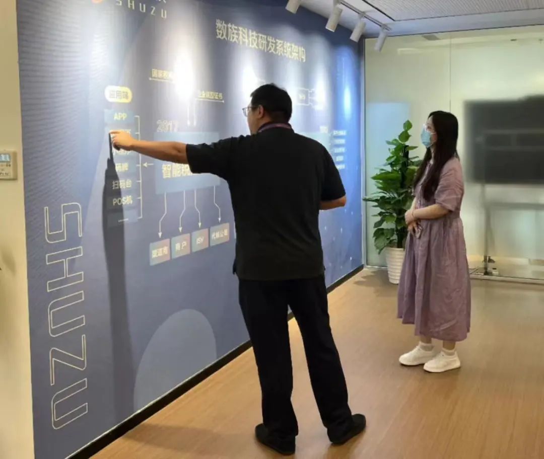 8月24日,团队在南京大学开甲书院学生事务中心主任唐赟老师带领下,横跨长江,抵达南京数族科技有限公司总部开展调研。调研伊始,数族行业应用中心杨平总监引导团队参观了数族科技近年来的发展动向和各类荣誉,以及数族科技目前运营的税控系统、解决方案等产品样例。