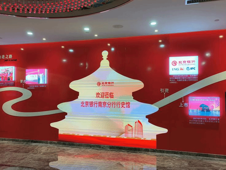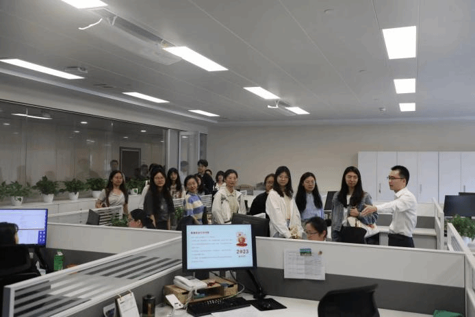在讲解员的带领下,同学们参观了北京银行南京分行的行史馆和办公区,对银行的发展历史以及工作环境和模式有了更直观的了解。