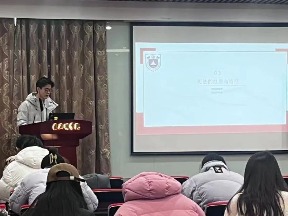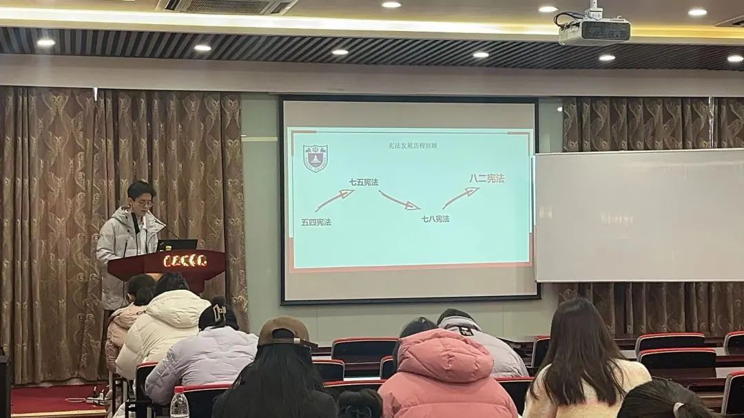 的同学们介绍了国家宪法日的由来。主讲人与同学们之间通过生动轻松的互动一起回顾了国家宪法日的发展历程,加深了对国家宪法日的了解。