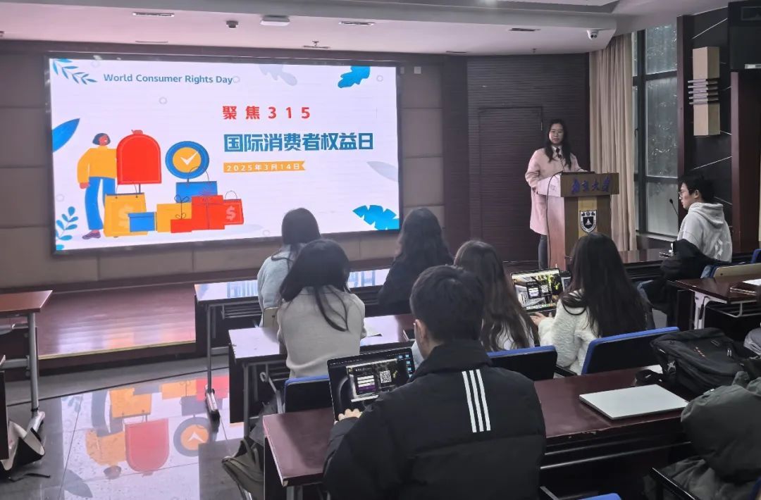 的同学们开展了一场关于消费维权的公益讲座。志愿者结合《消费者权益保护法》等相关法律法规,以具体案例为切入口,清晰准确介绍《消费者权益保护法》的相关规定和消费维权的具体渠道。其中,志愿者重点介绍了网购七天无理由退货、格式条款、外卖食品安全等问题,向同学们提示了可能存在的消费陷阱和权益侵害,并就如何维护自己的权益提供了细致可行的建议。