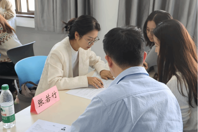 党委组织员遇苏老师四位嘉宾,他们分别从企业综合管理类求职方向以及律师/法务类求职方向出发,为大家分享简历制作的经验和技巧。到场的同学们不仅习得了理论知识,还收获了宝贵的一对一简历指导机会,与指导嘉宾们进行了深入的交流。