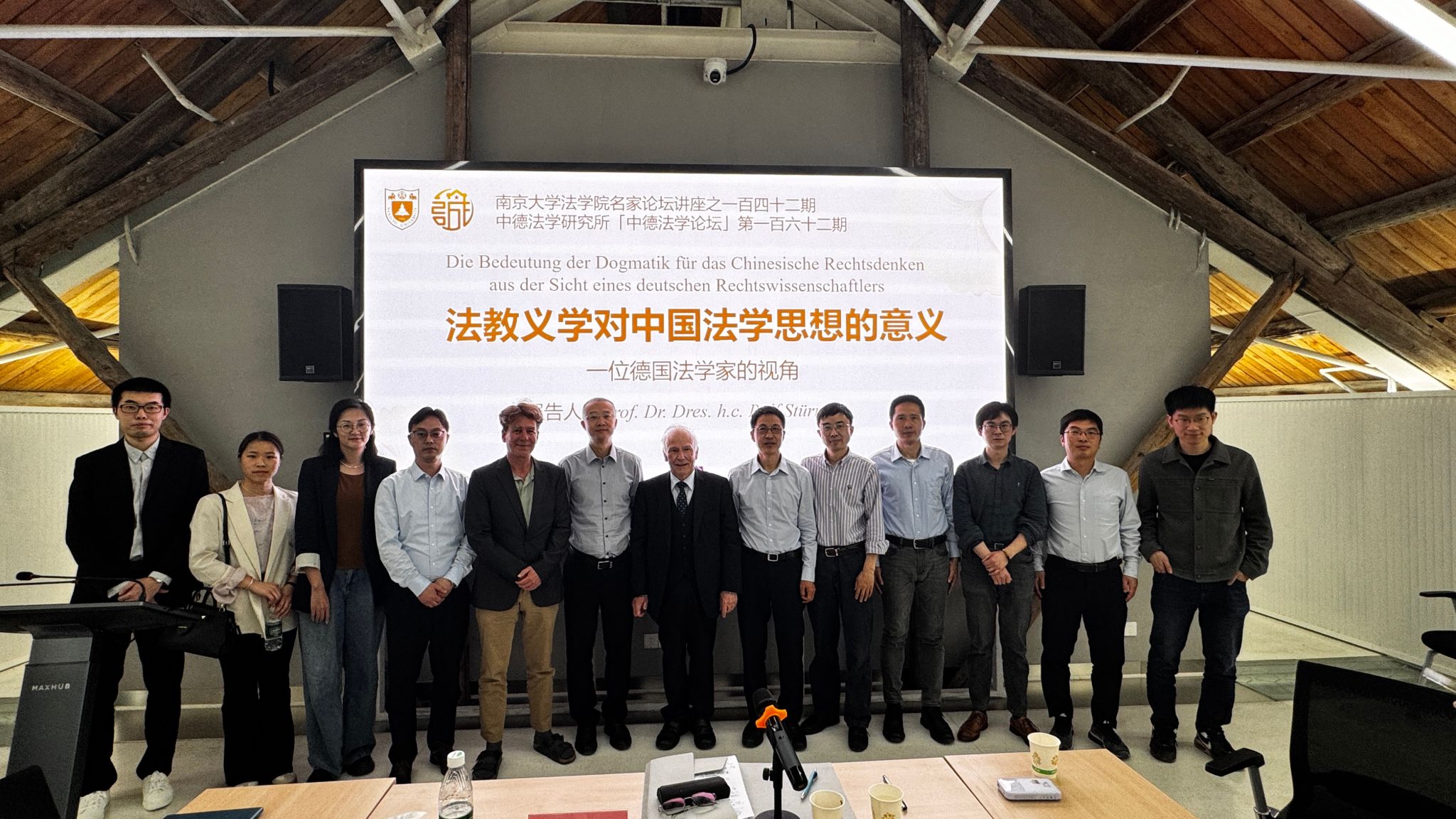 2025年4月10日,应南京大学中德法学研究所的邀请,德国弗莱堡大学罗尔夫·施蒂尔纳教授(Prof. Dr. Dres.h.c. Rolf Stürner)以《法教义学对中国法学思想的意义——一位德国法学家的视角》为题,为第162期“中德法学论坛”做学术讲座。