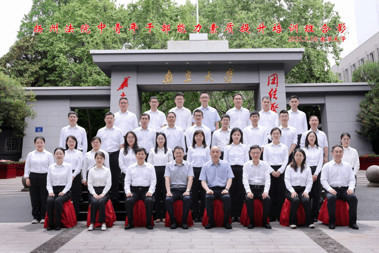 2025年5月18日至20日,扬州市中级人民法院在南京大学举办中青年干部能力素质提升专题培训班。本次培训聚焦新时代司法队伍专业化建设需求,通过"理论+实践"双轨教学模式,为扬州法院30名中青年干部完成了一次党性再淬炼、思想再解放、本领再提升、使命再升华的集中“学习旅程”。