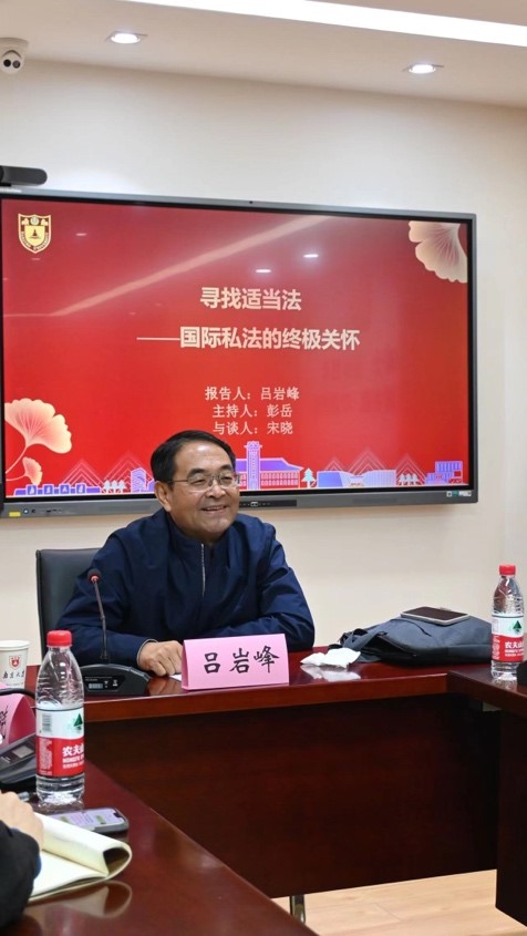 在吕岩峰教授演讲完毕之后,彭岳教授代表在座的老师和同学对其精彩的讲座表达了由衷的感谢,并发表自己的看法,指出本次讲座主题兼具高度、温度和深度,也为国际经济法学界提供了思考:国际经济法是不是也在寻找一种实体法?经济规制三层次说的理论是否也与适当法有异曲同工之妙?彭岳教授强调,法律的平衡状态或许是所有法律人共同的追求。宋晓教授参与本次讲座的与谈,其指出吕岩峰教授的学术研究呈现层层推进的发展过程,提示众多国际法学人可采的研究方法,即从已有的西方法学概念出发,深刻理解其本质含义,在此基础上拓展,或能重现阐释更多的法学意义。
