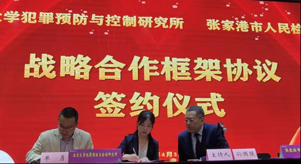 随后,开幕式上举行了张家港市人民检察院与南京大学犯罪预防与控制研究所的战略合作框架协议签约仪式。张家港市人民检察院作为最高人民检察院开展全国企业刑事合规工作首批六家试点单位之一,既有企业及企业家犯罪防治的丰富经验和素材,又有监督企业探索企业犯罪防治的职责。而南京大学犯罪预防与控制研究所既是国内最早研究企业犯罪风险防控的学术研究机构,也是较早研究刑事辩护,并为企业提供刑事合规法律服务的专门机构。为积极探索并努力推进既体现从严司法、让违规犯罪付出高昂代价,又最大限度降低社会成本、追诉成本的中国特色现代企业规制司法制度,经双方协商合作开展企业合规研究和合规法律服务。为此,南京大学犯罪预防与控制研究所副所长单勇教授与张家港市人民检察院副检察长吴晓敏女士代表合作双方单位在开幕式上完成了签约。