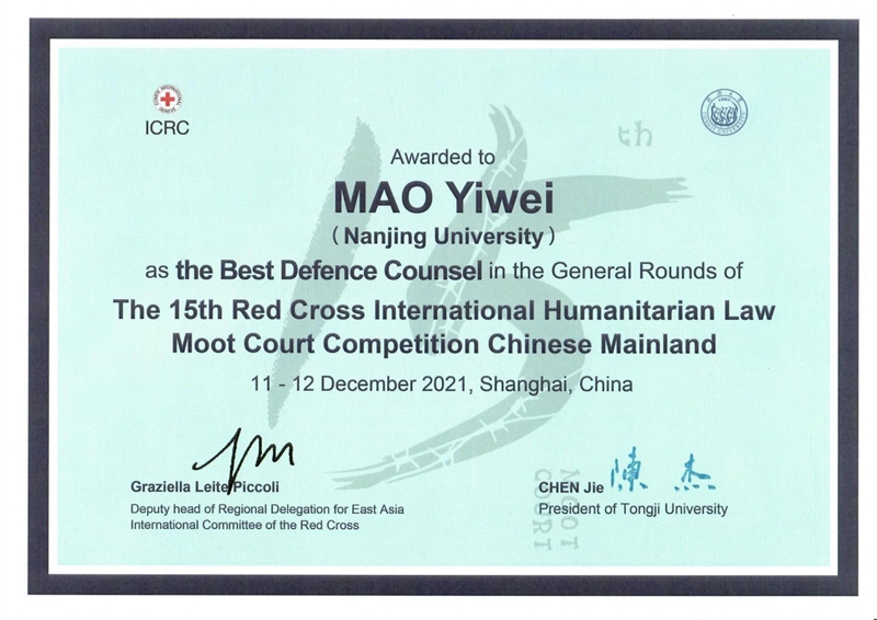 2021年12月11日至12日,红十字国际委员会和同济大学联合举办了第十五届中国大陆地区红十字国际人道法模拟法庭竞赛(The 15th Red Cross International Humanitarian Law Moot Court Competition),本届比赛共有来自全国高校的共有57支队伍参赛,经过激烈角逐,新澳彩开奖