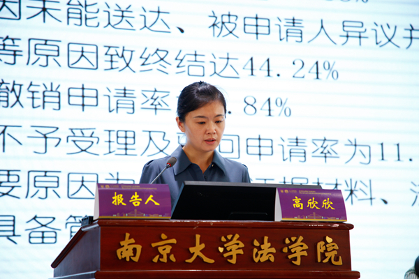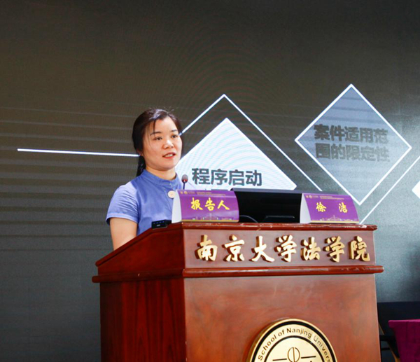 陈胜楠法官作了题为“速裁快审模式下小额诉讼程序的功能、限制及优化——以南通市基层法院的审判实践为蓝本”的报告。她通过对小额诉讼程序速裁快审模式下的现实图景介绍与价值功能分析,指出小额诉讼程序有利于当事人快速进入诉讼活动、对速裁快审具有较强的辅助功能,但同时也面临法官自由裁量权与当事人选择权冲突、法院效率利益与当事人诉讼利益间冲突、制度规则不完善与制度有效运行间冲突等现实性问题。对此,应在加强小额诉讼监督指导、强化案件分流、增设复议环节等方面缓解现实困难。