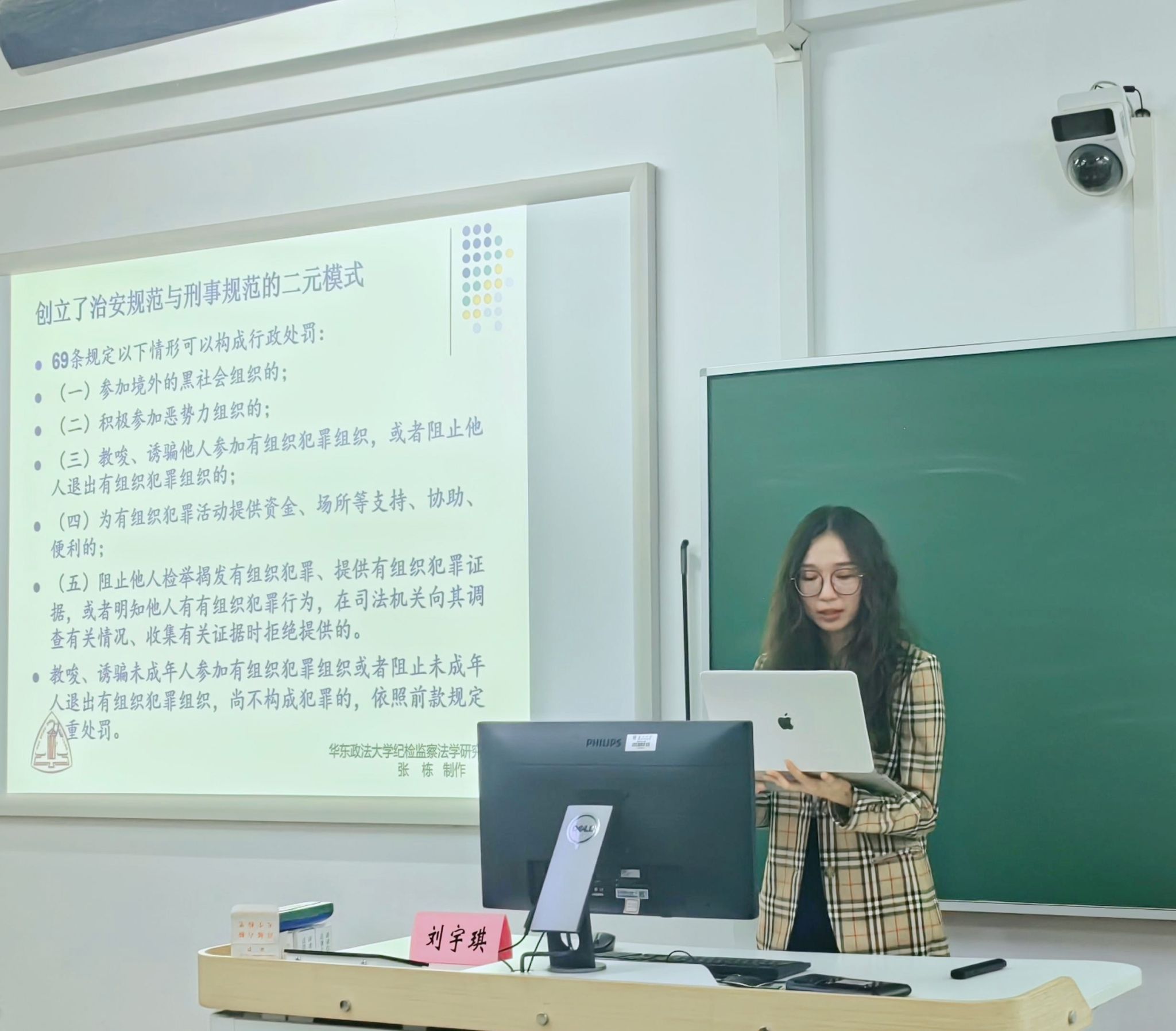 刘宇琪讲师高度评价了张栋教授讲座内容的系统性、实践性、人文关怀性以及理论前沿性,并分享了自己的一些思考。她认为,反有组织犯罪法在强调预防和治理的同时,应遵循比例原则,并应注意及时性。此外,涉案财产利害关系人的申诉权和忠告权缺乏明确程序,行政化色彩浓厚。基于此,刘宇琪讲师建议,检察机关应引导涉案财产证据的收集工作,监督相关强制措施的实施。另外,在审判阶段,涉案财产的处置和犯罪事实应同时审查,在涉案财产复杂的情况下,法院可分开调查,以确保被告对涉案财产的处置有更充分的辩护机会。
