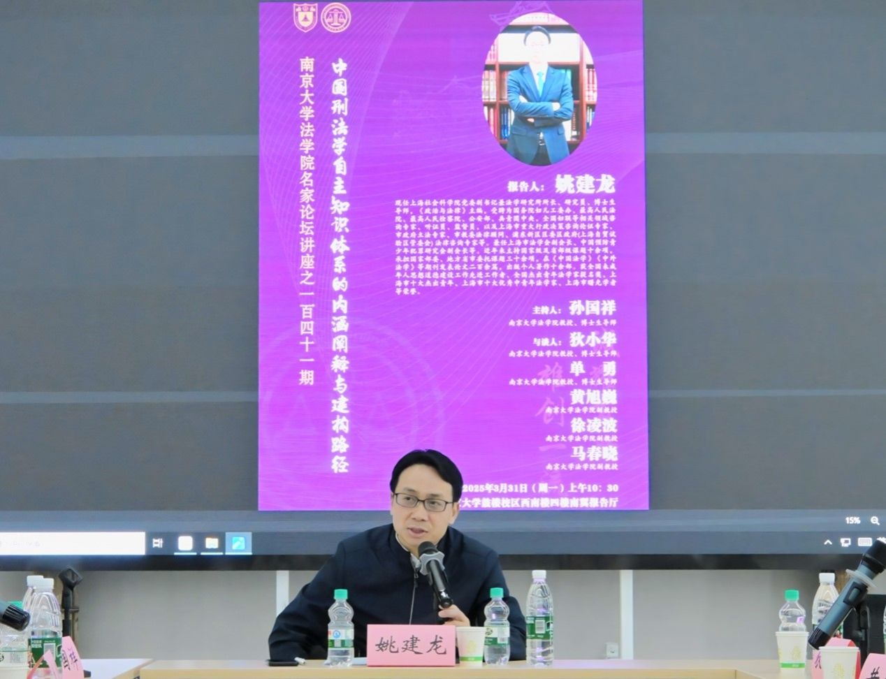 名家论坛讲座之一百四十一期于南京大学鼓楼校区西南楼四楼报告厅举行,姚建龙教授进行了题为《中国刑法学自主知识体系的内涵阐释与建构路径》的学术报告。