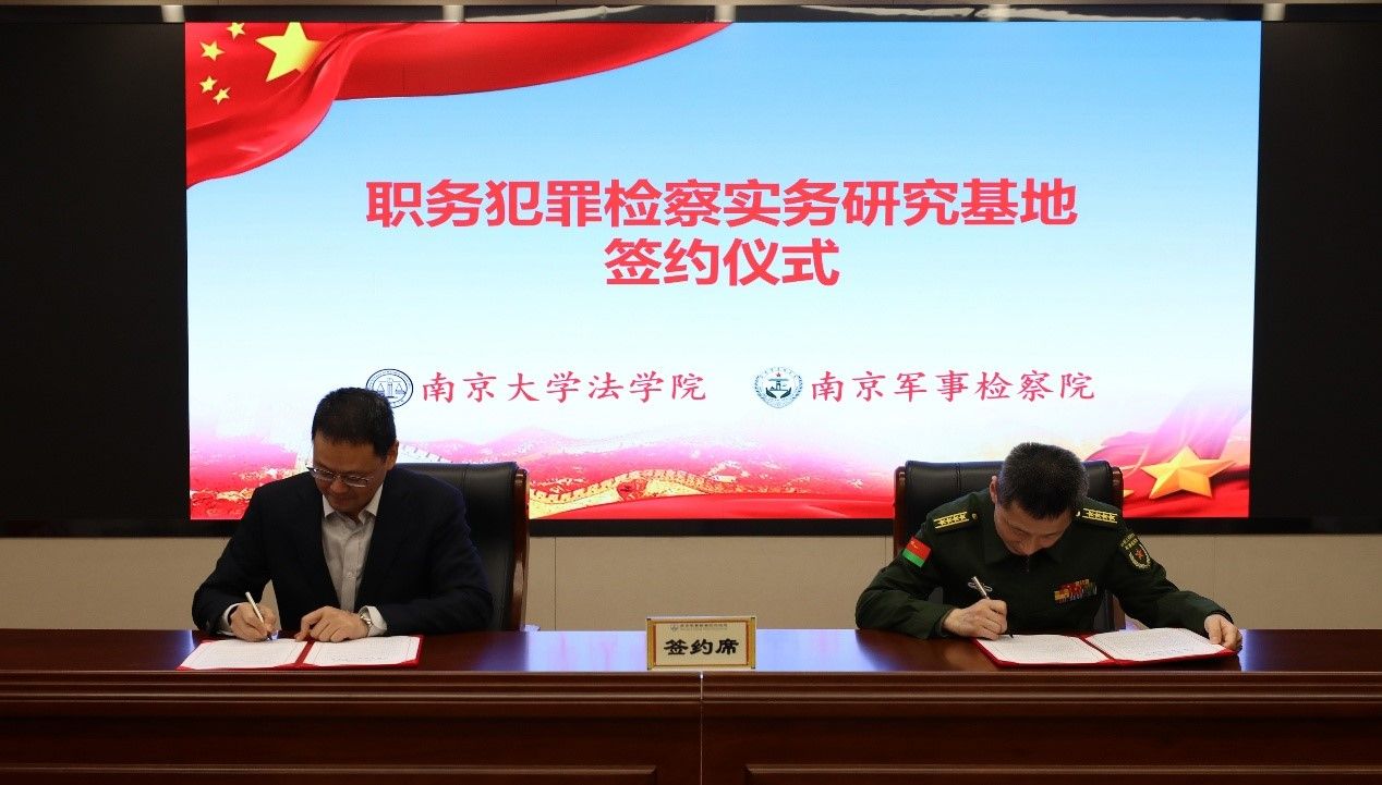 副院长杨阳,副教授白云锋、李晴,助理教授姜秉曦,南京军事检察院上校副检察长赵雨清、一室中校主任邓颜金、二室中校主任曹帅等同志参加了共建签约。