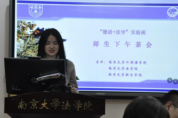 的同学帮忙录音。现在“德语+法学”双学位对同学们而言是重大利好,希望同学们能够平衡好两门学科的学习。此外,她还介绍了中德所的优秀师资、良好的学习氛围以及大致课程安排。