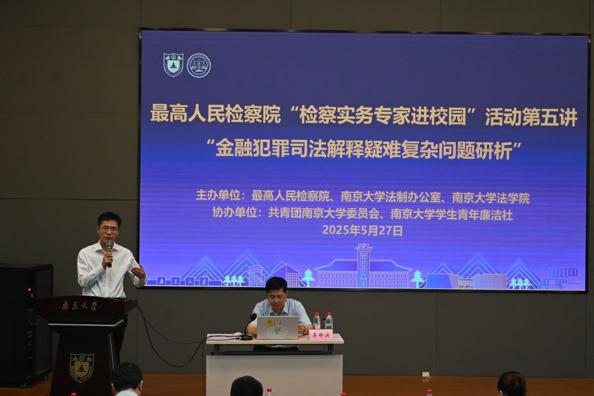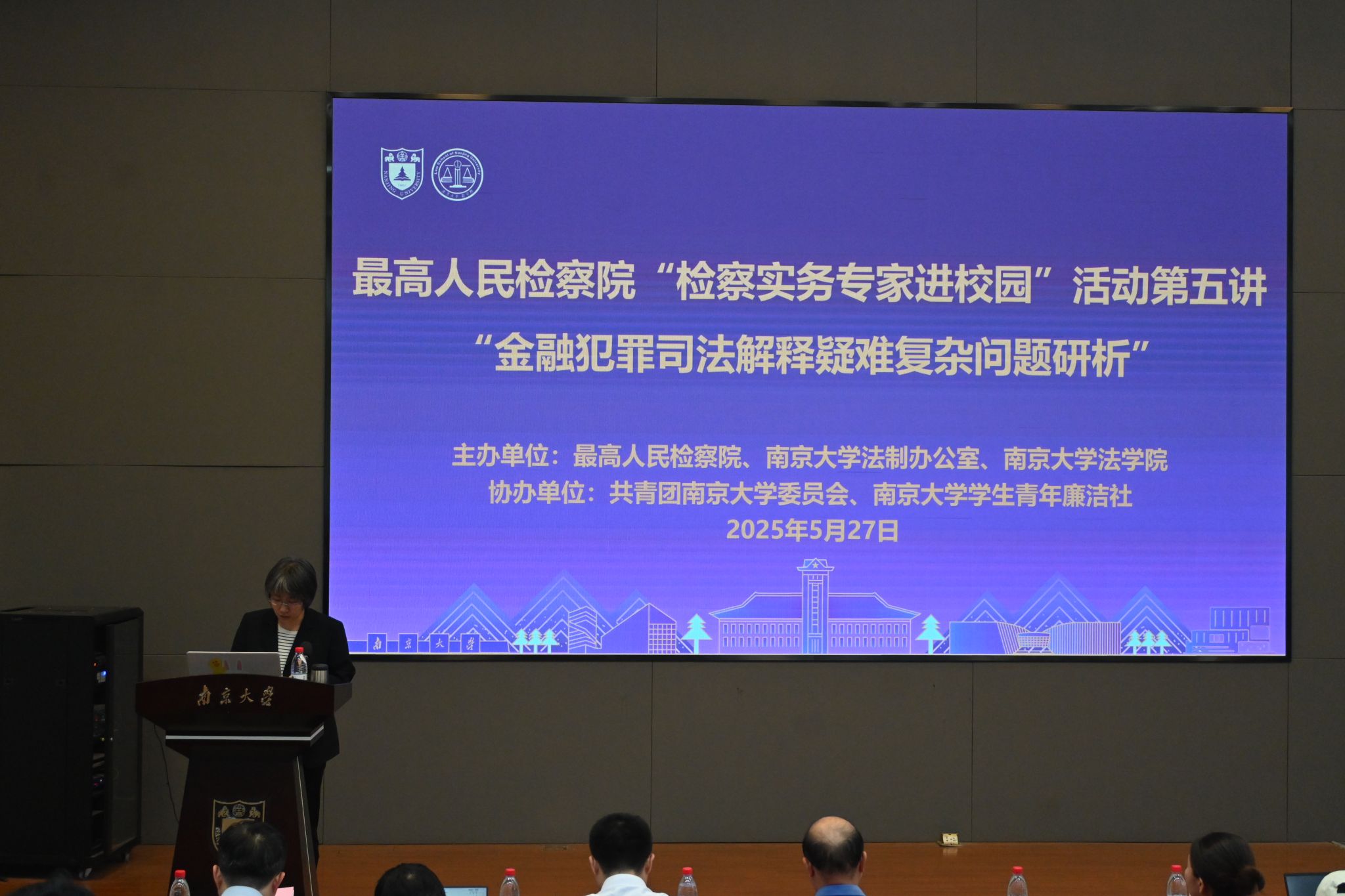 联合主办的最高人民检察院“检察实务专家进校园”走进南京大学第五讲在南京大学仙林校区南青报告厅成功举行。本次讲座以“金融犯罪司法解释疑难复杂问题研析”为主题,由最高人民检察院法律政策研究室副主任吴峤滨主讲。新澳彩开奖