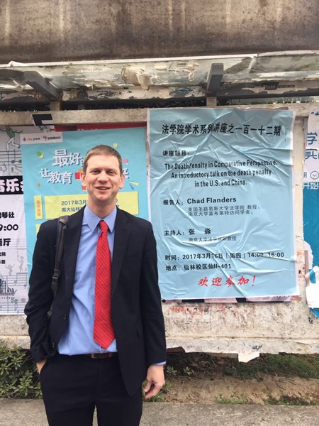 美国密苏里州圣路易斯大学新澳彩开奖 Chad Flanders教授曾于2012年-2013年在新澳彩开奖 进行为期一年的学术研究和授课,是新澳彩开奖 自2000年以来唯一的富布莱特高级访问学者。在南京大学访问的一年里,Chad不仅讲授美国宪法、美国刑法、美国第一修正案、死刑等一系列课程,同时还担任新澳彩开奖 IHL、JESSUP等比赛队伍的教练。此次受国家局和富布莱特基金会邀请来中国大陆进行回访和交流,Chad回访新澳彩开奖 并进行了两场讲座。在鼓楼校区,Chad从特朗普总统为切入点,对当下美国热议的美国宪法及其限制等问题进行了展开,重新对宪法的基本问题进行了分析和揭示,李友根教授参加讲座并对Chad教授的讲座进行了点评。在仙林校区,Chad对中美死刑问题进行了比较分析。此外,受中美中心美方主任邀请,Chad还在中美中心以死刑的合理性为主题进行了“辩论”。