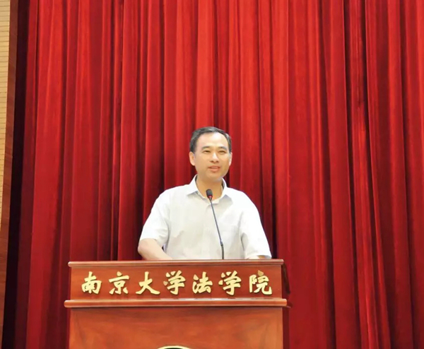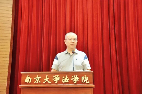 校友叶巍庭长讲话。他首先感谢南京大学的信任和鼓励,并指出作为校外聘用指导老师,要注重理论与实践相结合的教学,要德法兼修培养高素质的法律人才,更要贯彻习近平总书记关于国家法治建设以及教育的各项要求。